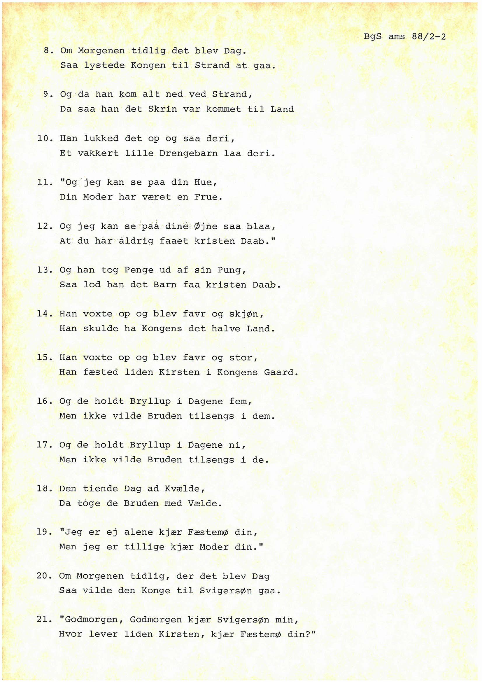 Melodi og tekst til Den trofaste hustru