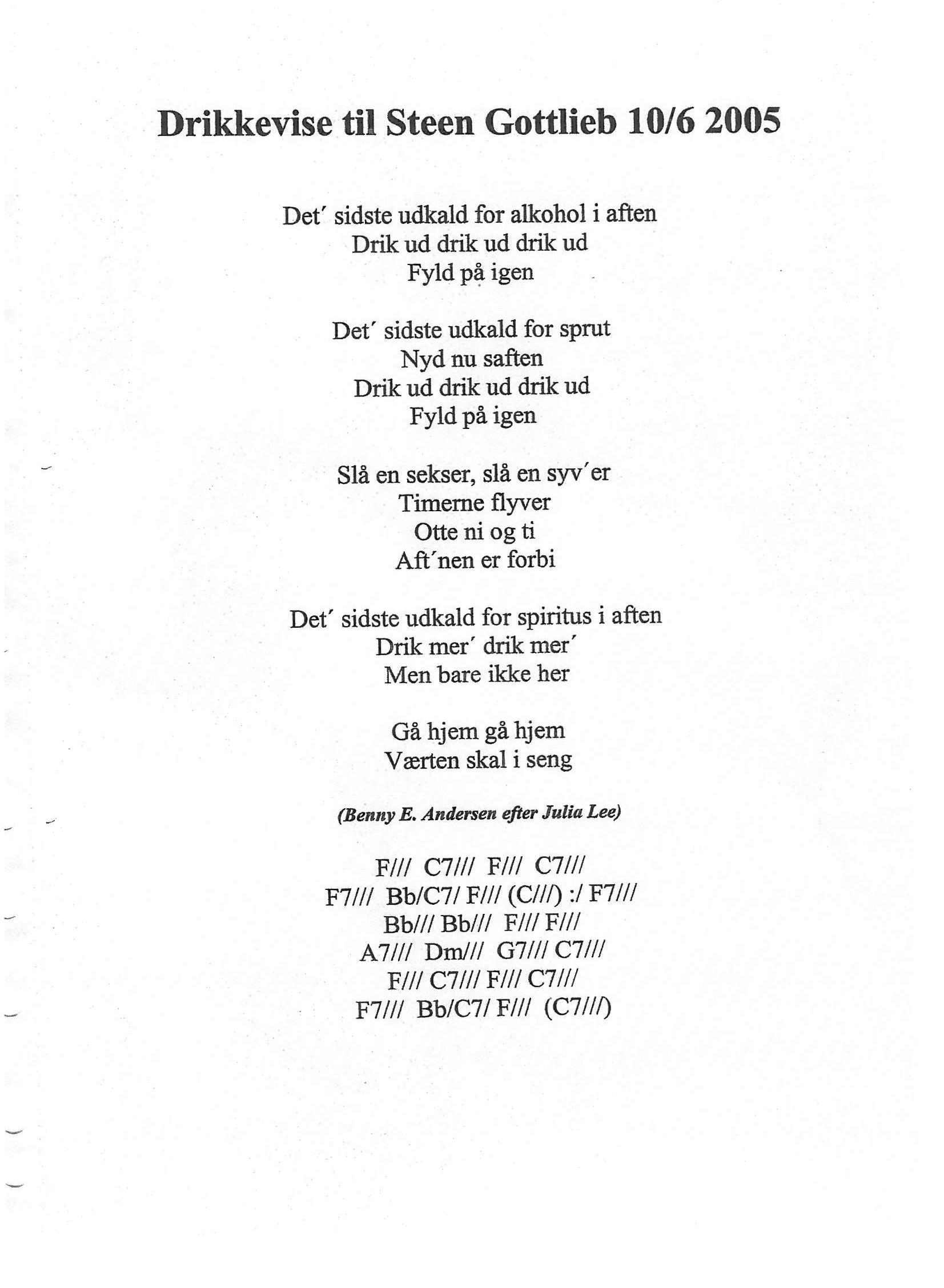 anledning: Steen Gottlieb 50 år 10/6 2005Arstal: 2005sektion: I Anledning Afpublikationer:I anledning af 8 (manus) Tekst og beciffring til Drikkevise Lyd til Drikkevise
