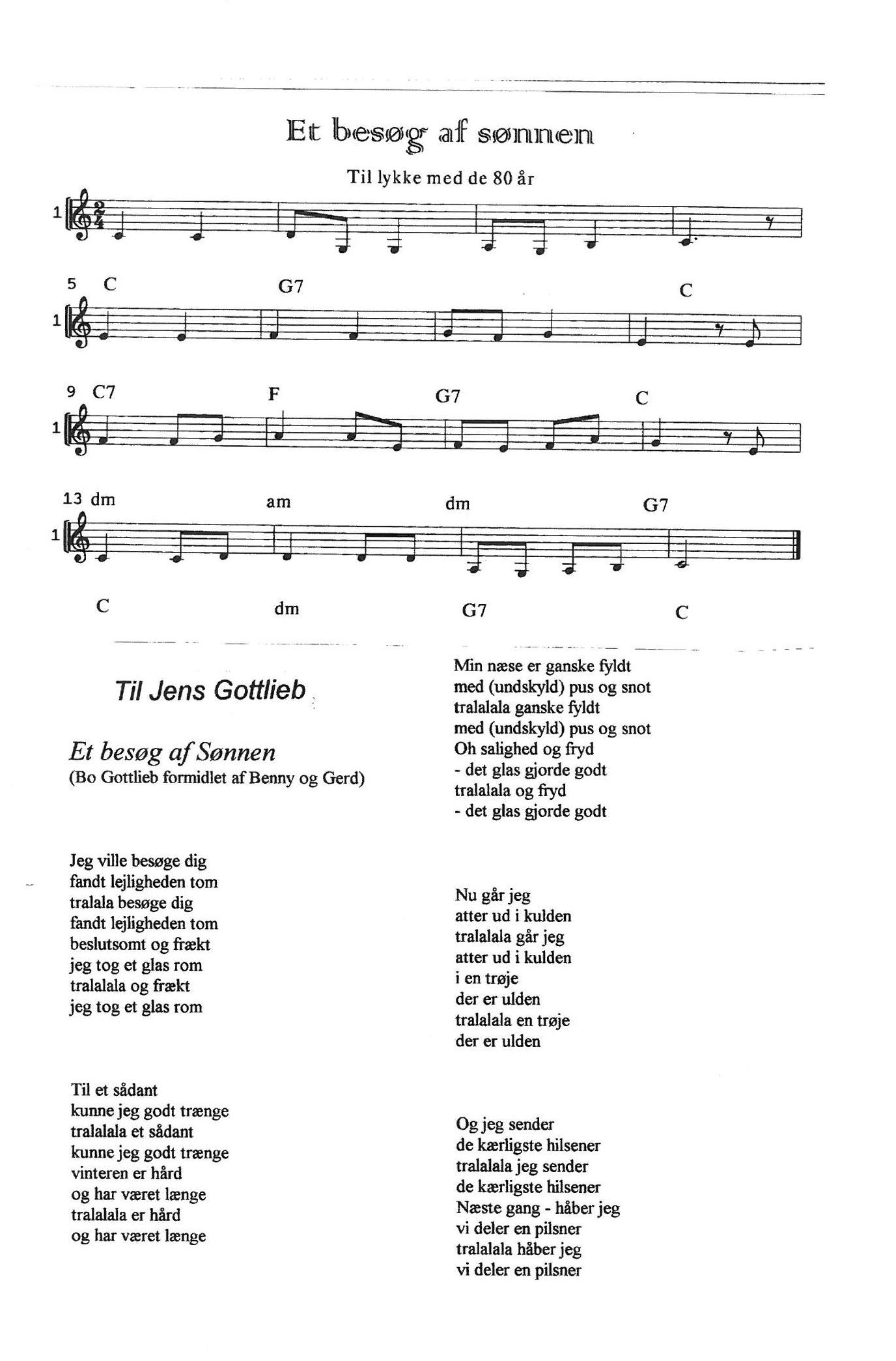 anledning: Jens Gottlieb 80 år 6/8 1996Arstal: 1996sektion: I Anledning Afpublikationer:I anledning af 6 (tryk) Node og tekst til Et besøg af sønnen