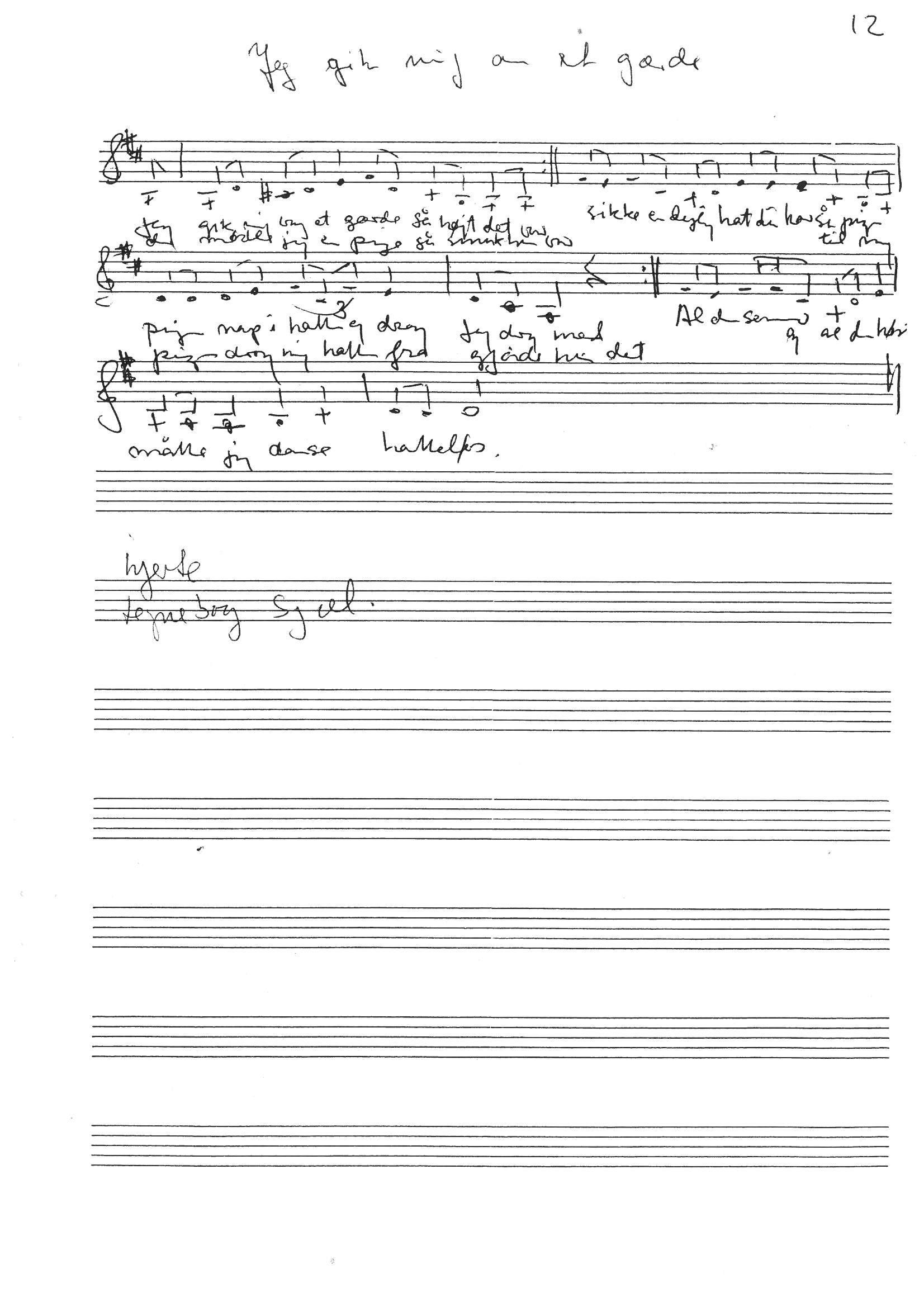 Arstal: ?sektion: Ballademusikpublikationer:I Anledning Af 9 (manus) lyd til Jeg gik mig bag et gærde Node og tekst til Jeg gik mig bag et gærde