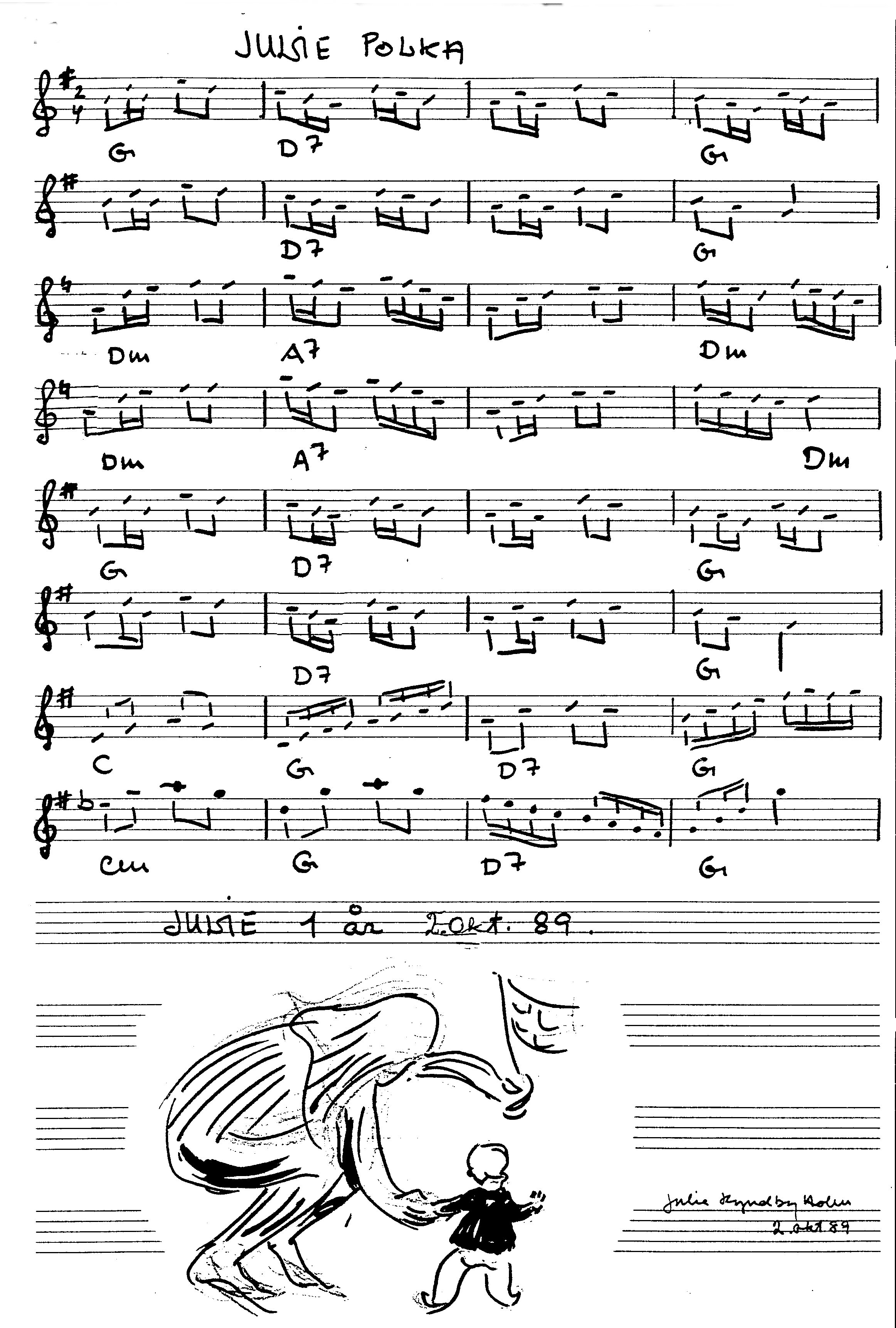 anledning: Julie Kyndby Holm 1 år 2/10 1989Arstal: 1989sektion: I Anledning Afpublikationer:I anledning af 3 (tryk) Node til Julie Polka