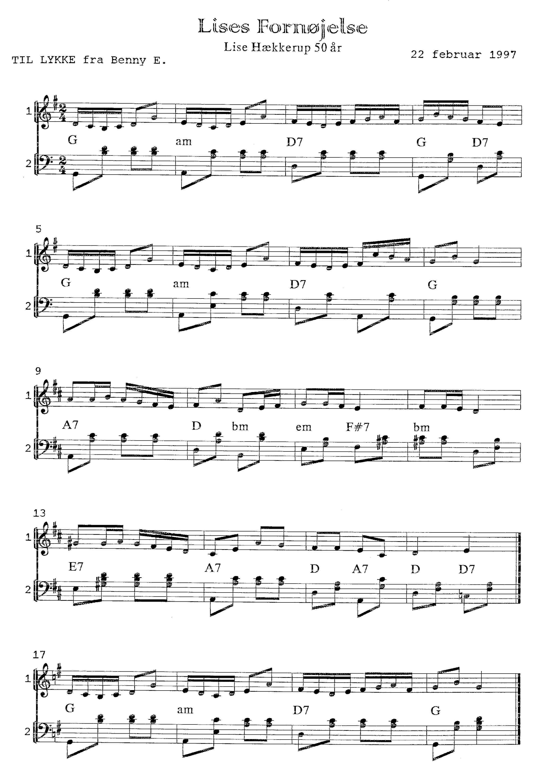 anledning: Lise Hækkerup 50 år 22/2 1997Arstal: 1997sektion: I Anledning Afpublikationer:I anledning af 4 (tryk) Node til Lises fornøjelse