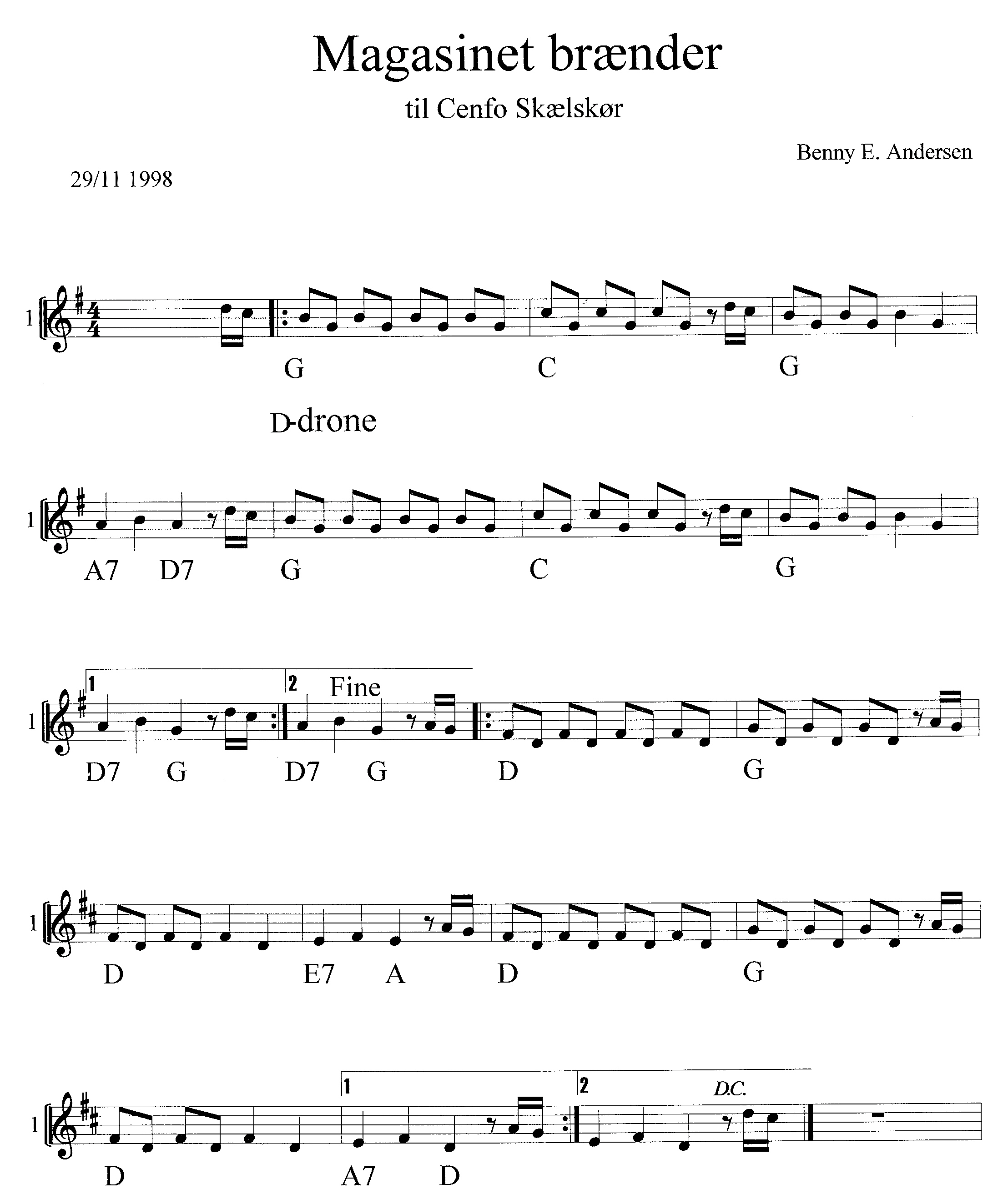 anledning: Cenfo Skælskør 29/11 1998Arstal: 1998sektion: I Anledning Afpublikationer:I anledning af 5 (tryk) lyd til Magasinet brænder Node til Magasinet brænder