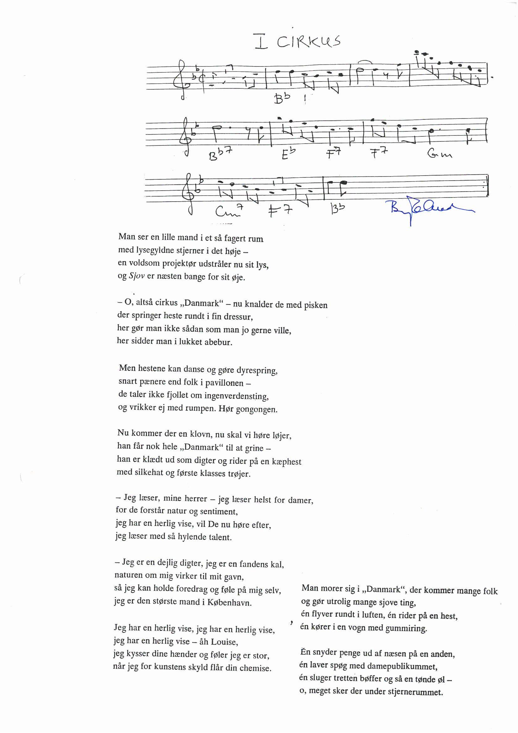 Sjov i Danmark, 1928 Arstal: Ca. 1994sektion: Melodier til digteforfatter: Jens August Schadepublikationer:Sjov i Danmark (CD) Node og tekst til Lirekassemusik Node og tekst til Markedsdag i byen - På torvet Node og tekst til I cirkus Node og tekst til I luftgyngen