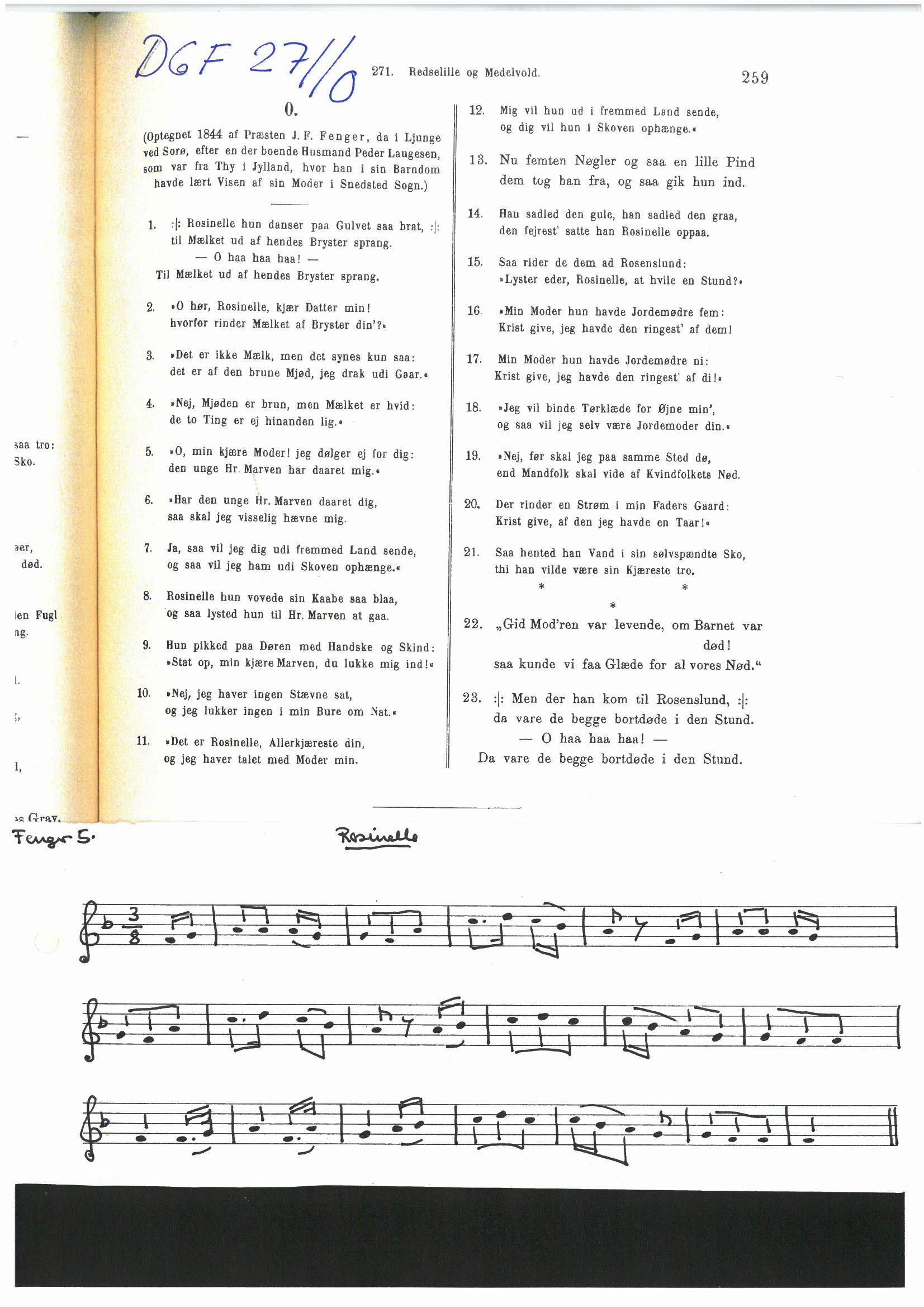 En af Lynge-Brobyballaderne indsamlet omkring 1850´erne af Fengerfamilien, Lynge. Genplaceret på Broby Gamle Skole af Benny og Jørgen From Andersen omkring 1985. Arstal: 1985sektion: Ballademusikpublikationer:Lynge-Broby ballader (tryk) Redselille og Medelvold (Rosinelle) 2 Node til Redselille og Medelvold (Rosinelle)