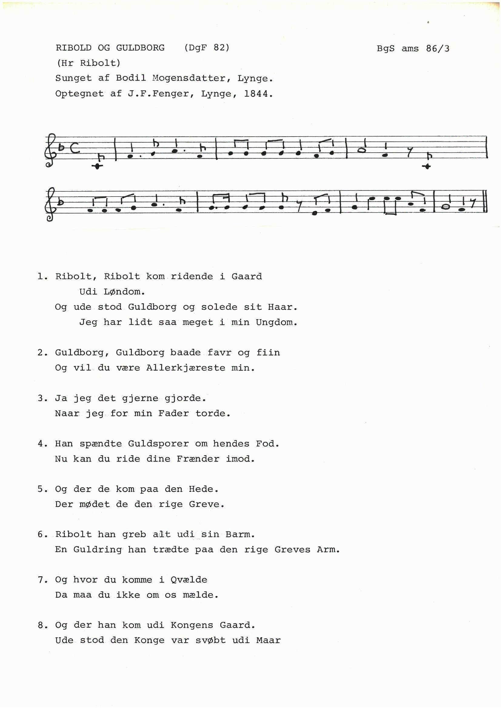 En af Lynge-Brobyballaderne indsamlet omkring 1850´erne af Fengerfamilien, Lynge. Genplaceret af Benny og Jørgen From Andersen på Broby Gamle Skole omkring 1985. Arstal: 1984sektion: Ballademusikpublikationer:Lynge-Broby ballader (tryk) lyd til Ribold og Guldborg Node og tekst til Ribold og Guldborg