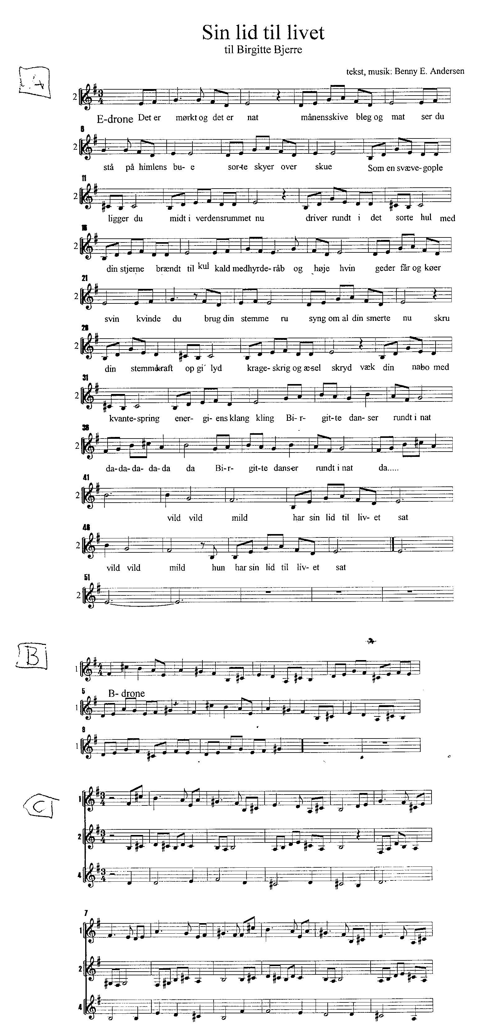 Til Birgitte Bjerre, som har kæmpet sejt og stædigt mod alvorlig sygdom og har bevaret sin "lid til livet". anledning: Birgitte Bjerre 50 år 6/8 1993Arstal: 1993sektion: I Anledning AfBallademusikpublikationer:Ballademusik (tryk)Her er vi og her er verdens navle (CD) Lyd til Sin lid til livet Node til Sin lid til livet