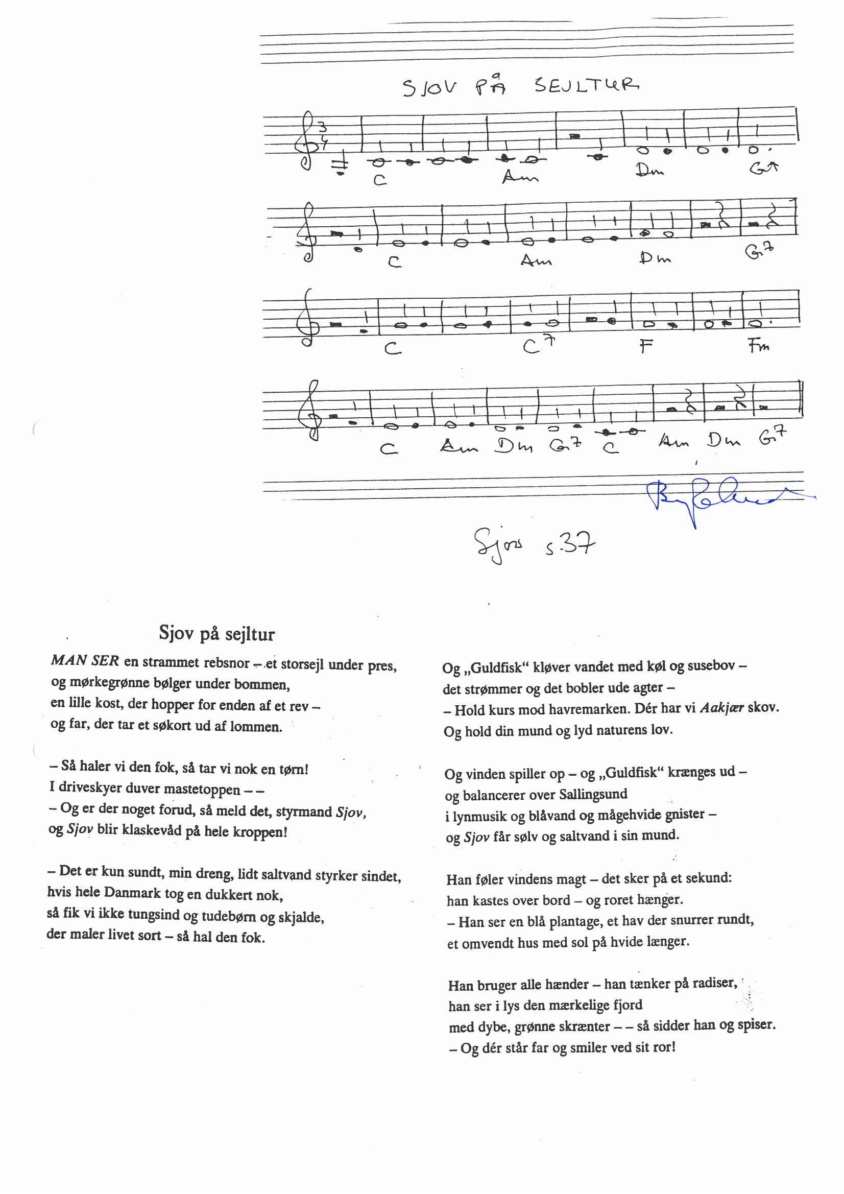 Sjov i Danmark, 1928 Arstal: Ca. 1994sektion: Melodier til digteforfatter: Jens August Schadepublikationer:Sjov i Danmark (CD) lyd til Sjov på sejltur Node og tekst til Sjov på sejltur