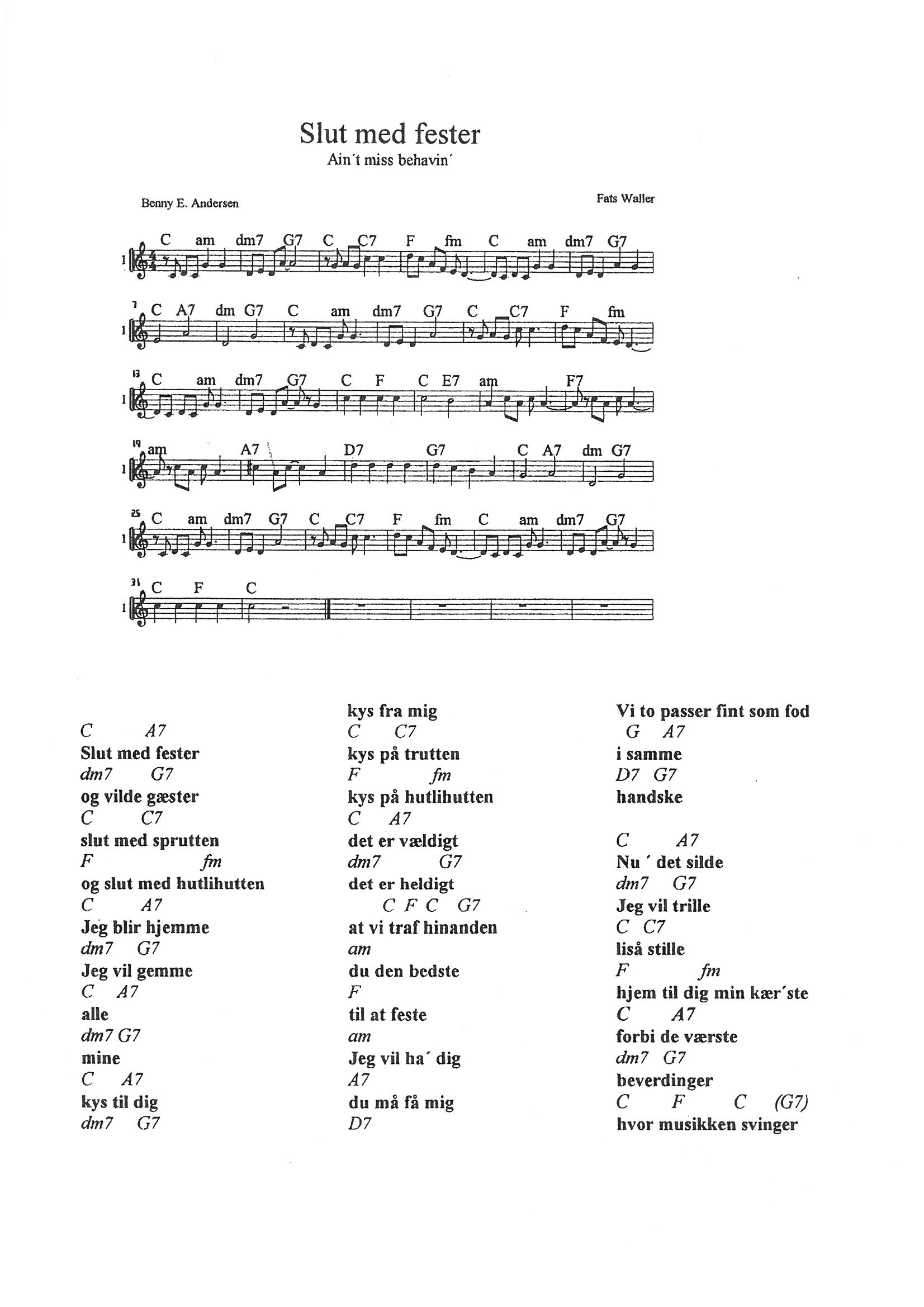 Benny skriver på CD´en: Til min kæreste Gerd og det er ikke tilfældigt, at den er først. sektion: Gårdsangerjazzpublikationer:Gårdsangerjazz (CD) Slut med fester Tekst og node til Slut med fester