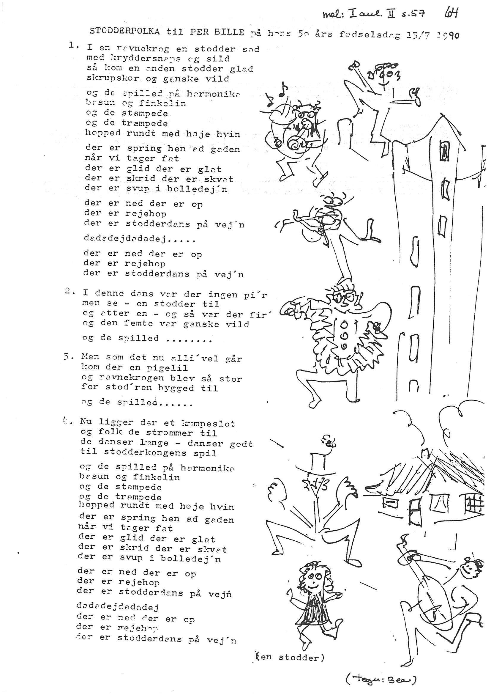 anledning: Per Bille 46 år 13/7 1986Arstal: 1986sektion: I Anledning Afpublikationer:I anledning af 2 (tryk)I Anledning Af (kassette) Lyd til Stodderpolka Node til Stodderpolka Tekst om Stodderpolka Tekst til Stodderpolka