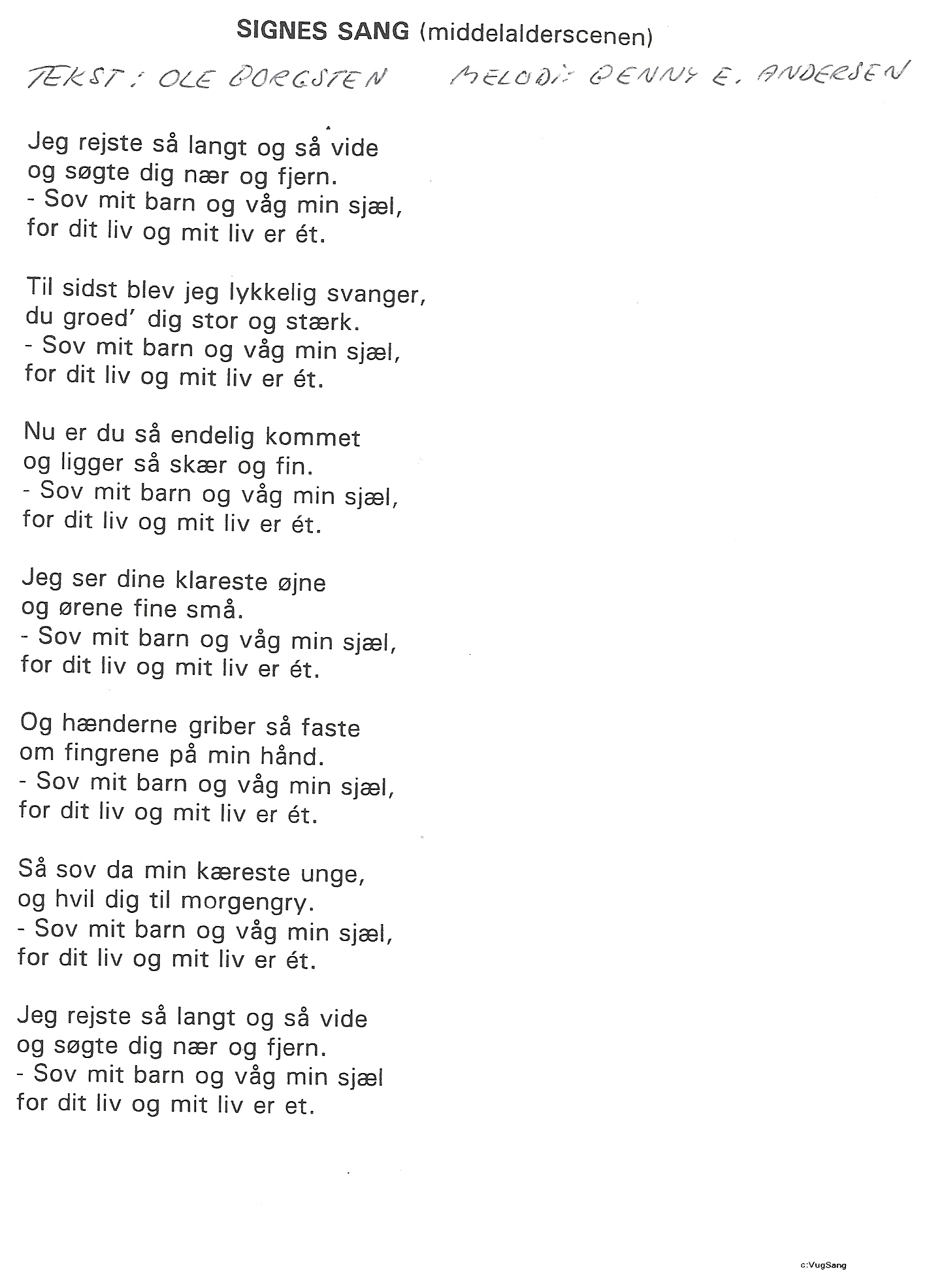 Tekst til Signes sang (vuggesang)